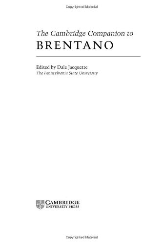 The Cambridge Companion To Brentano (Cambridge Companions To Philosophy)From Brand: Cambridge University Press. Negotiating with reading behavior is no requirement. Reading The Cambridge Companion To Brentano (Cambridge Companions To Philosophy)From Brand: Cambridge University Press is not type of something marketed that you could take or otherwise. It is a thing that will certainly change your life to life a lot better. It is the important things that will certainly provide you several things all over the world and also this cosmos, in the real world and right here after. As what will certainly be provided by this The Cambridge Companion To Brentano (Cambridge Companions To Philosophy)From Brand: Cambridge University Press, just how can you negotiate with the many things that has lots of advantages for you?